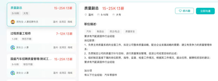 王加渊表示,由于温州的外来务工人员比较多,老板希望奖励技术管理人才,于是在朋友圈发了一条招聘信息,没想到引起了广泛关注。